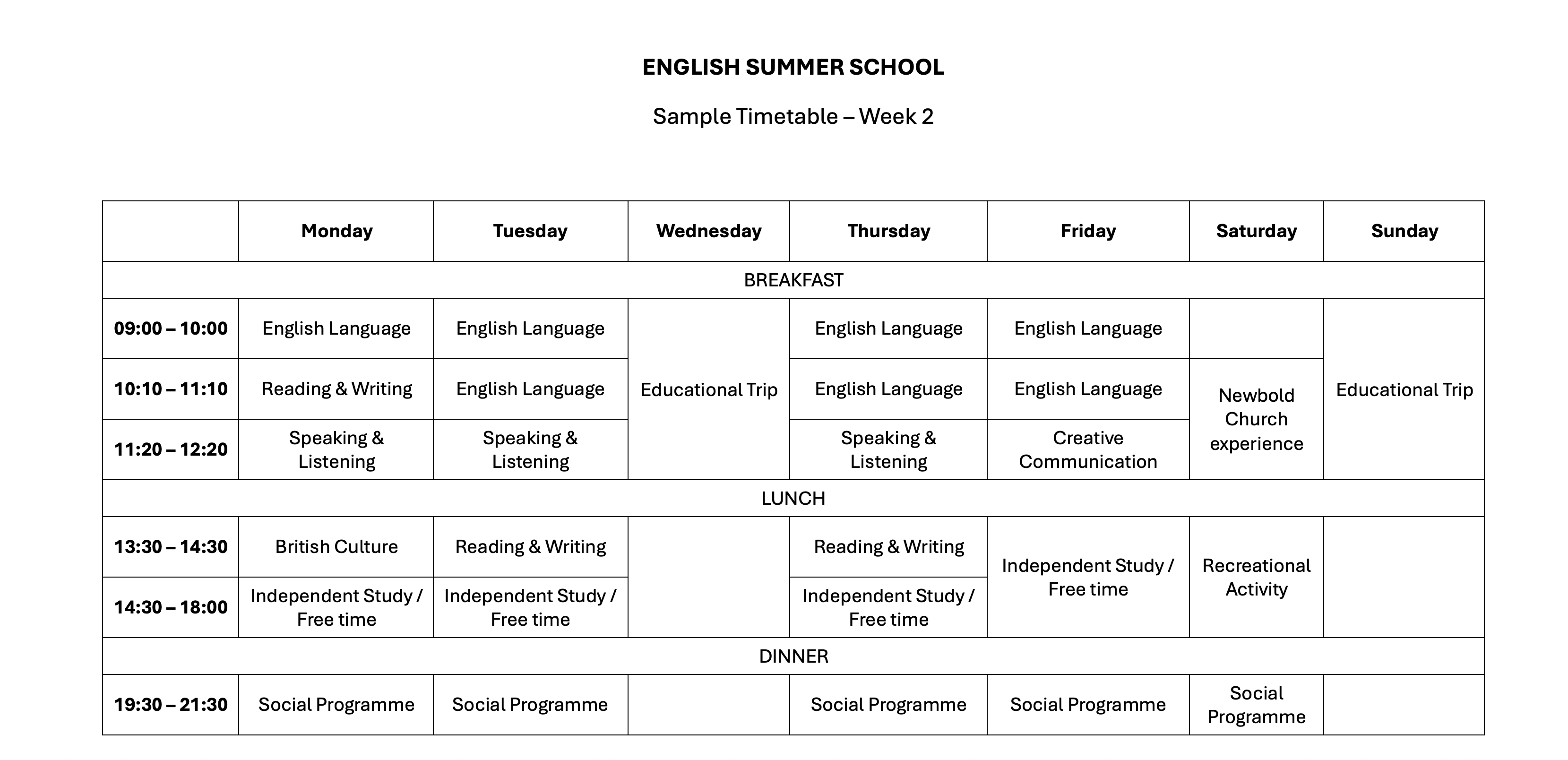 Programme: English Summer School